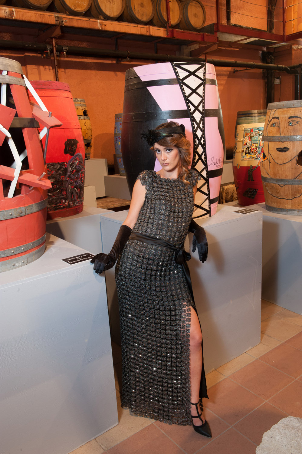 Robe VictoriaStrass jet hématite, Ceinture à noeudCrédit photo : Vincent Lattuca -