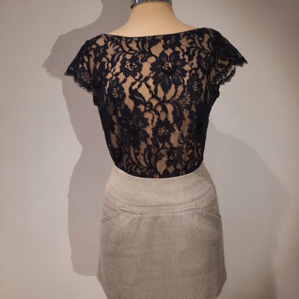 Le top en dentelle bleu marine. Il se ferme dans le dos par un noeud en organza pour un air très léger !